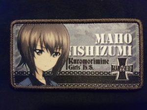 Second on the list but not in battle is the imouto of the Nishizumi family, Miho representing the Oarai Girls’ High School. She’s a proven leader that has forsaken her family’s style of combat to fight the Sensha-do her own way. The merrowed border on this patch is dark blue with a complimentary background color and the Oarai emblem. She looks right at home with her headset and microphone on her neck, ready to lead her school to victory one more time.