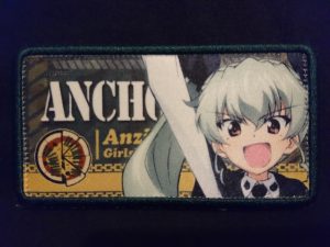 The first patch I’m covering today is Anchovy from the Anzio Girls’ High School. Real name Chiyomi Anzai, she’s the hot-blooded commander for her school’s Sensha-Do team. It features a dark green merrowed border along with the emblem of the Anzio school. It does an effective job of accurately capturing Anchovy’s character colors and design. Though, while her signature cape is visible, the riding crop she carries around is disappointingly not present.
