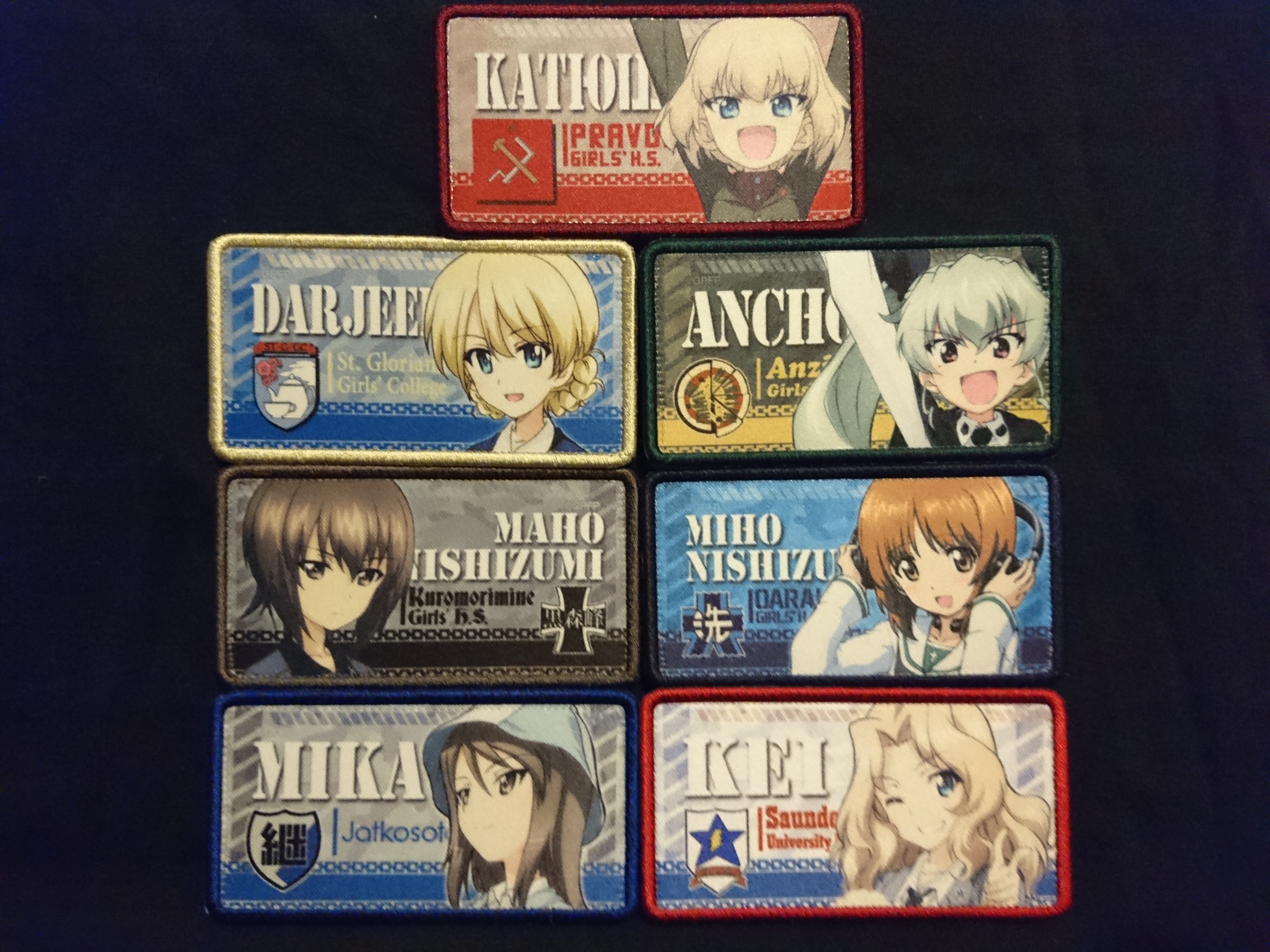 I’m coming at you today with the complete set of patches from Girls und Panzer der Film, officially licensed and produced by Cospa. These are really fine patches that all feature the names of the girls and the schools they fight to defend. On top of that, all the girls featured are the commanders of their individual school’s Sensha-do teams.
