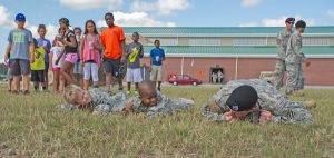 A US Army soldier teaches the next generation of child soldiers how to high crawl in preparation for the Invasion of Russia (2022, colorized)