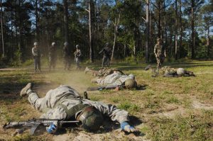 The final individual movement technique I will cover is the three-to-five second rush. Aptly named because that’s what it is, a three to five second rush to advance on enemy positions when speed is more important than concealment. Rushes should be kept closer to three seconds than five, but definitely no longer than five. The reason being that a bunch of scientists smarter than I figured out that the average time for a soldier to react, train his sights on something moving, and fire is about five seconds. Ideally you have cover available when rushing and you rush from cover to cover. If cover is not available or very sparse, what is done is you rush, immediately go prone, roll to the left or right for about one revolution, crawl for a few meters, and rush again. This is the most effective way to confuse the hell out of anyone shooting at you, and can even give the impression that they are facing a larger force than they really are. Sometimes it’s integrated with firing from the prone so as to keep the enemy’s head down and give a slightly larger margin of safety while rushing.