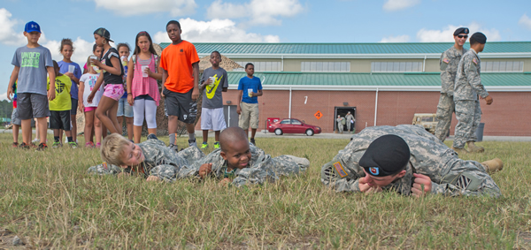 A US Army soldier teaches the next generation of child soldiers how to high crawl in preparation for the Invasion of Russia (2022, colorized)