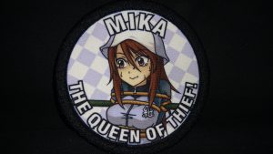 Returning to the table sooner than we expected is Mika from Girls und Panzer on another patch. Designed and sold by Rhapsodical Plane, if you’re out of country from him the only way to buy it is to order it on eBay. Sadly, it’s currently sold out there as someone grabbed the last one after I made my order.