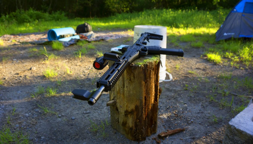 The rifle deployed showing off its thin profile and swivel mount sporting the PA Advanced Micro Dot optic (Centralia, 2016)