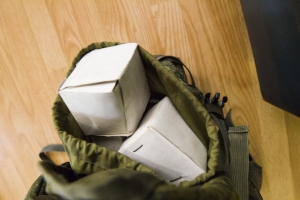 The first buttpack will be dedicated for packing in items needed to keep dry. I’ll open the buttpack and stuff my rain gear into it. While not pictured, I will put them into a sealed plastic bag first, making sure that it is airtight to prevent condensation from forming on the insides.