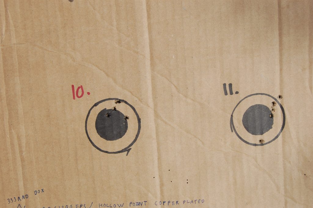If you are a decent shooter you will have no issues whatsoever. The gallery below has eleven of some of the more commonly found 22.lr in your local stores shot in 5 shot groups at 50 yards at the dots. their sizes for reference are 1 2/8″ outer circle is 2 2/8″.