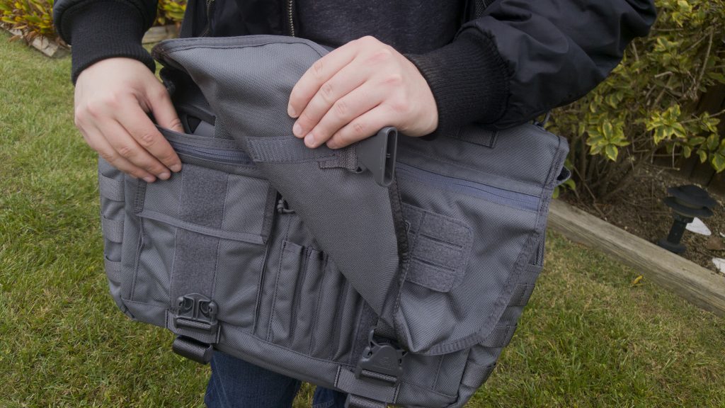 Are you a businessman, student, photographer, or a tactical courier? I can see this bag being most useful to those who carry an assortment of large and small items everyday, but would like to rock a different aesthetic. A common benefit to these bags is how easy and comfortable it is to carry laptops in them. And say I need to retrieve an item in a crowded area or I’m in a hurry, I’d like to have easy access to the contents of my bag without having to take it off of my body. Though to be honest, the choice between a messenger bag and backpack is going to come down to the taste of the individual. My personal use would be a range bag for handguns and PDWs.