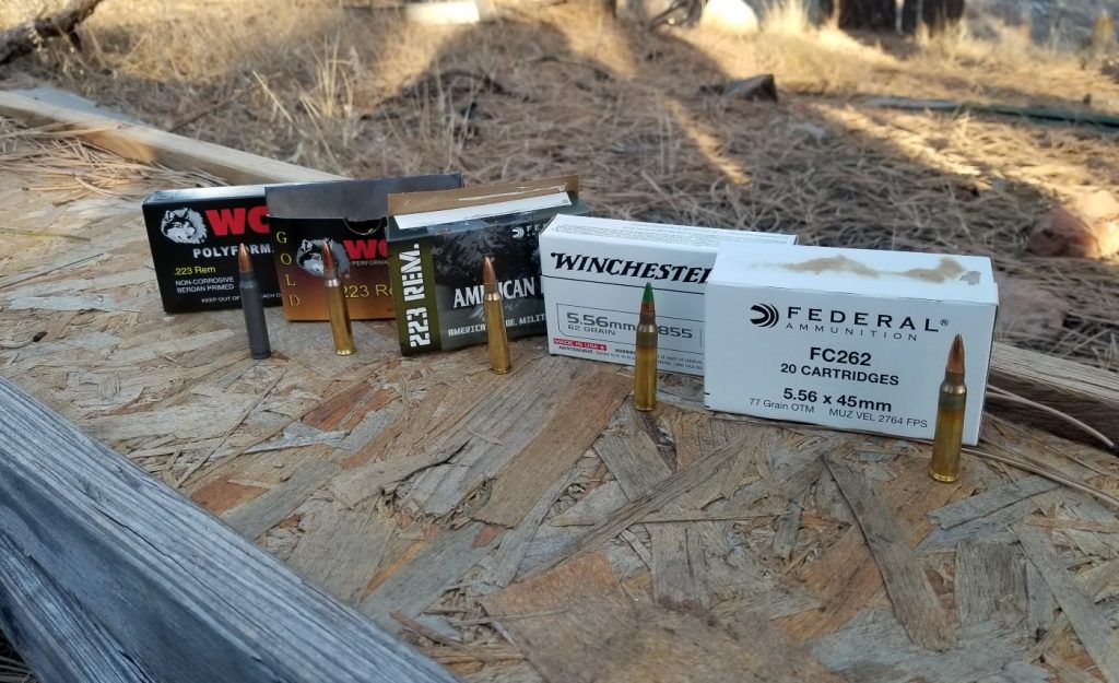 Accuracy testing was done with a Primary Arms 3×9 Duplex scope at maximum magnification with a Primary Arms basic mount, at a distance of 100 yards using a prone supported firing position with an improvised support. The conditions in which test firing occurred were dry and dusty, with 8 to 18 MPH winds. Ammunition used for testing was Wolf 55gr .223 Steel case, Wolf Gold 55gr .223 Brass case, Federal .223 55gr, Winchester M855 5.56mm 62gr with steel penetrator, and Federal 77gr 5.56mm Match ammo. Testing was done with three 5 round groups with each type of ammo.