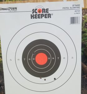 4-round grouping at around 75 feet, standing. Three are grouped decently, one was way off.