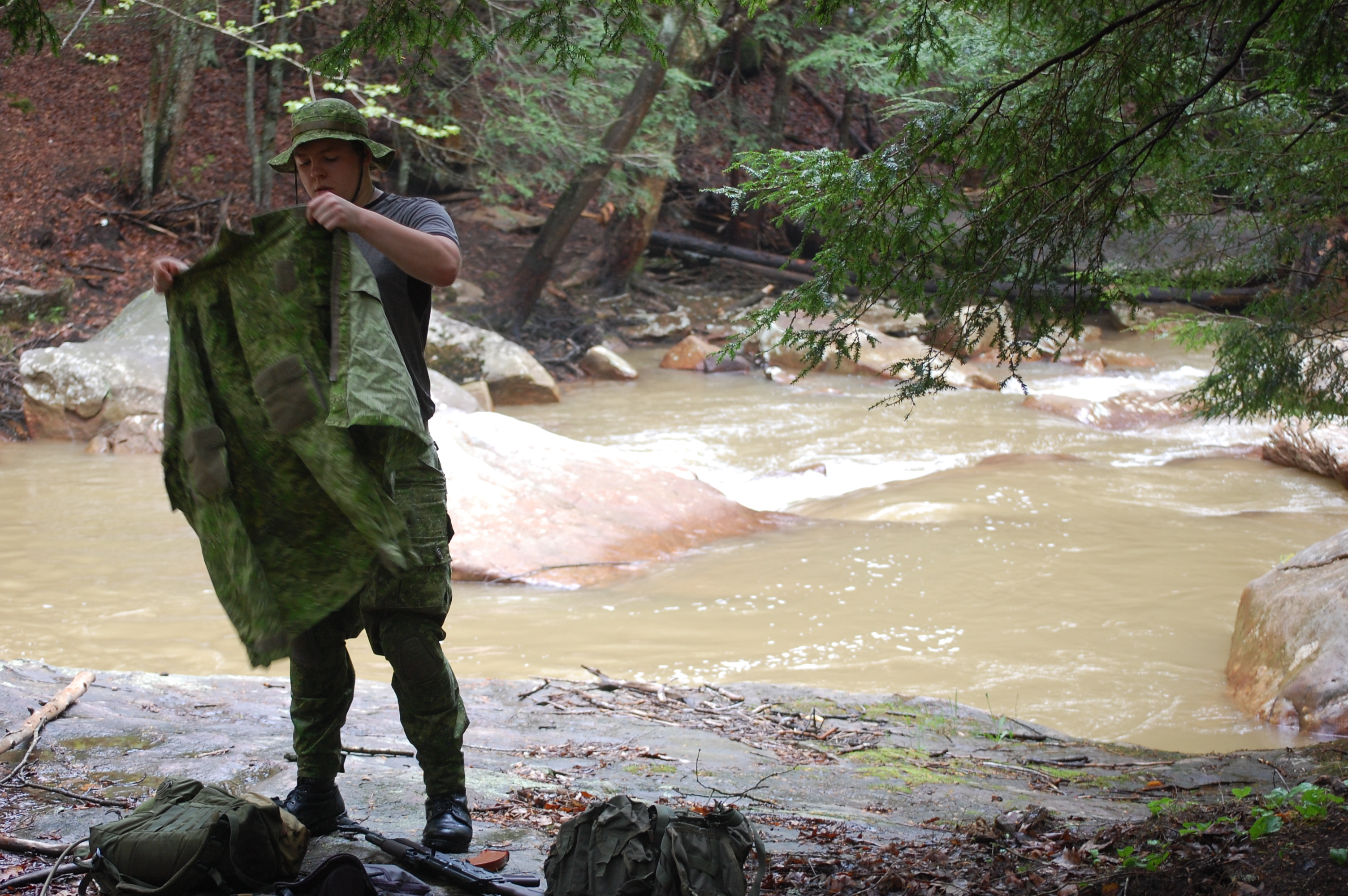 The scrim net, While not looking like much it is a rather useful piece of gear. The scrim net measures 120cm x 150cm with reinforced stitching and edges to withstand getting caught on branches, large enough to cover an average sized person from head to ankles. It can be used to break up your silhouette, Wrapped around your head/neck to keep insects off or the sun itself off your neck. The scrim can be worn in a number of ways, either as a neck scarf covering your face, draped over your back like a cape, or if one is feeling creative, it can be used as a cover for gear as well. It’s made from Rip-Stop fabric and double stitched at the ends/ corners to resist tears if snagged.