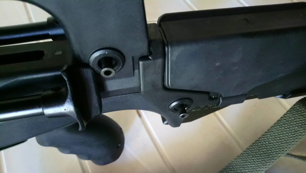 This is your selector. Note that both sides have a “1” stamped which means no matter where you turn it will always be single fire and middle is the safety.