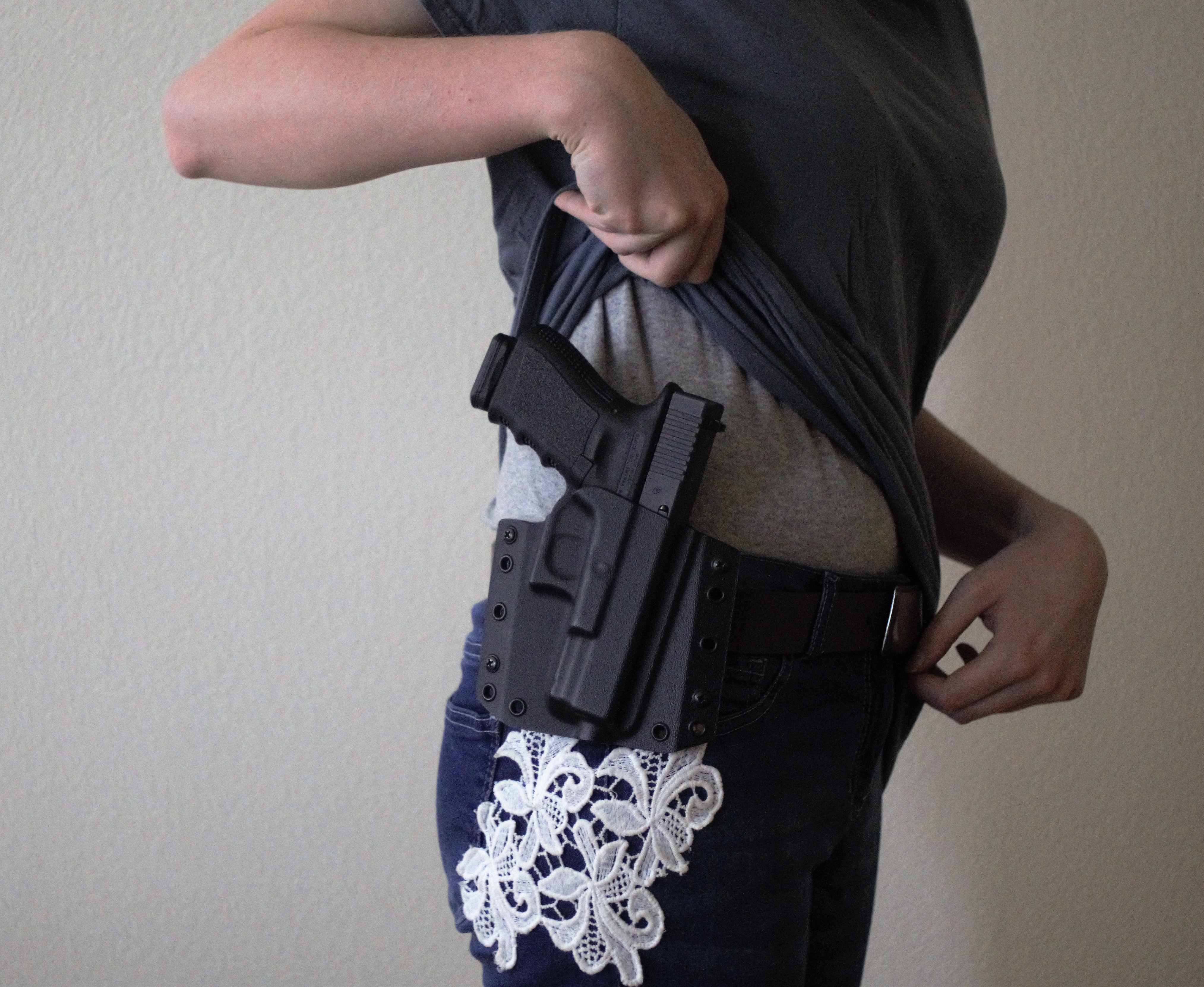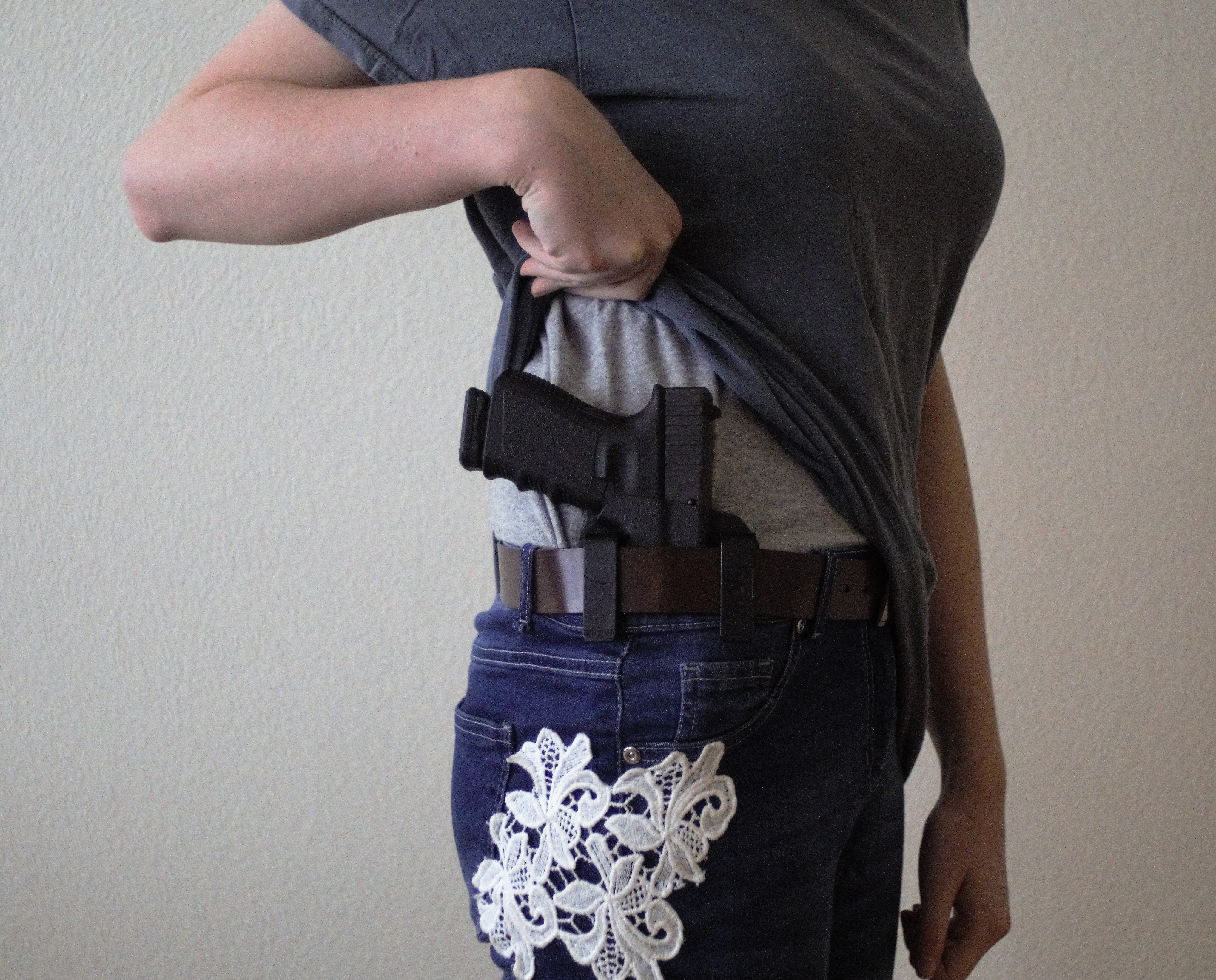 The weapon itself needs to be hidden because that’s the point in this, and I honestly have a lot of trouble hiding my Glock 19. Jackets and baggy shirts negate these issues most of the time but summer is tough on me. I can say that the holsters conform to my frame in a natural fashion which is certainly a plus. There’s nothing unnatural sticking out below my waistline, but above the waistline is where I start to lose the “concealed” part of “concealed carry”.