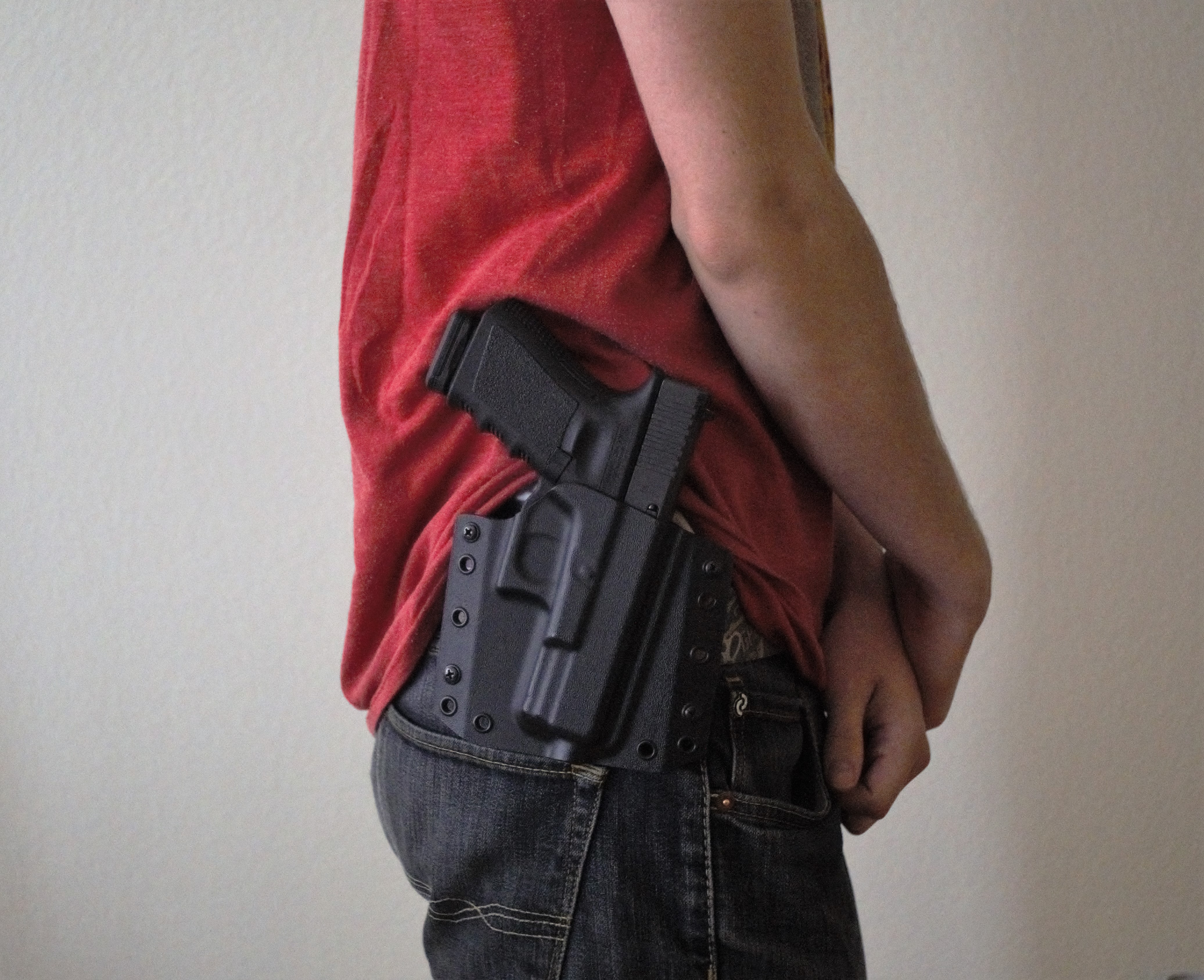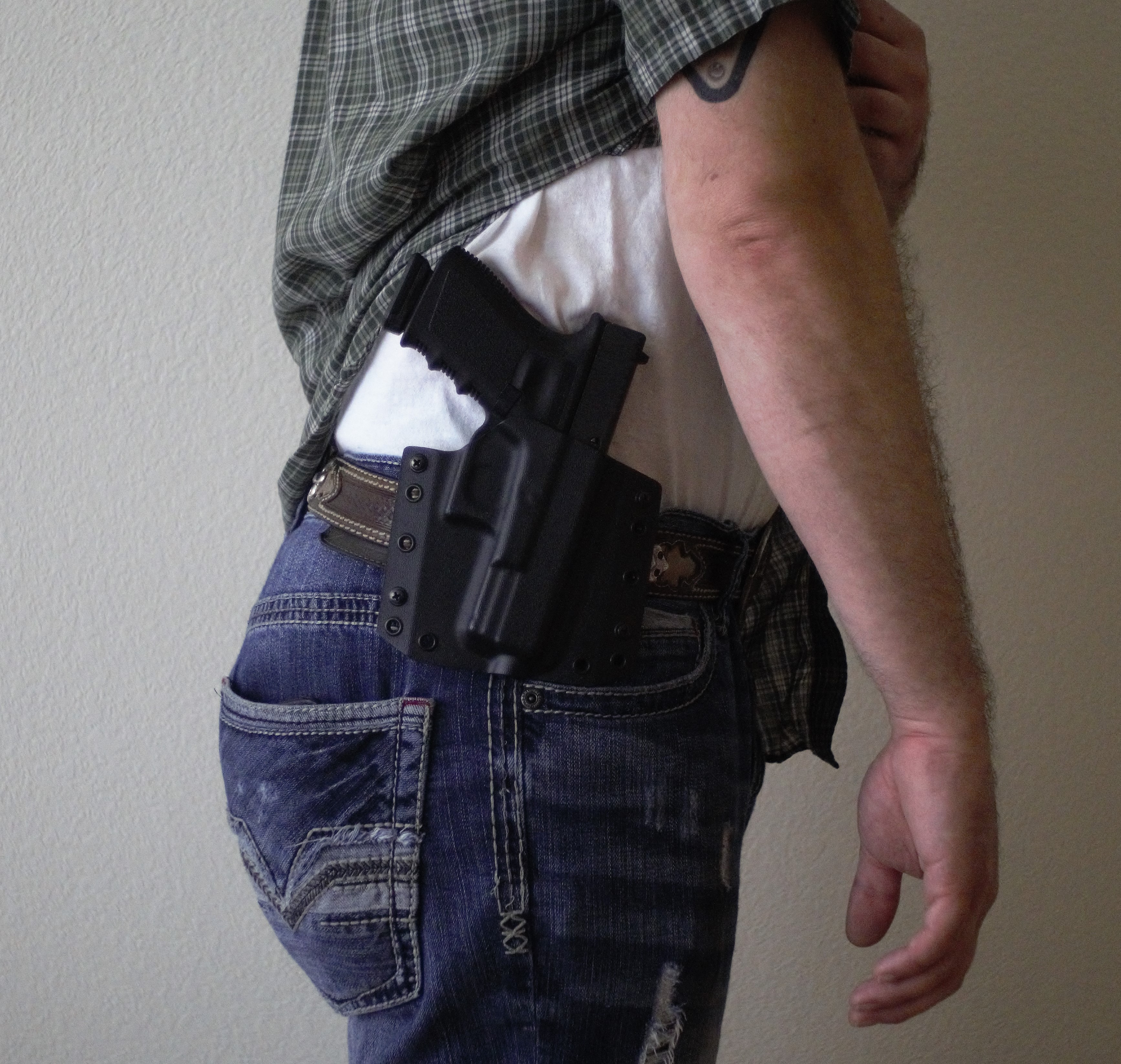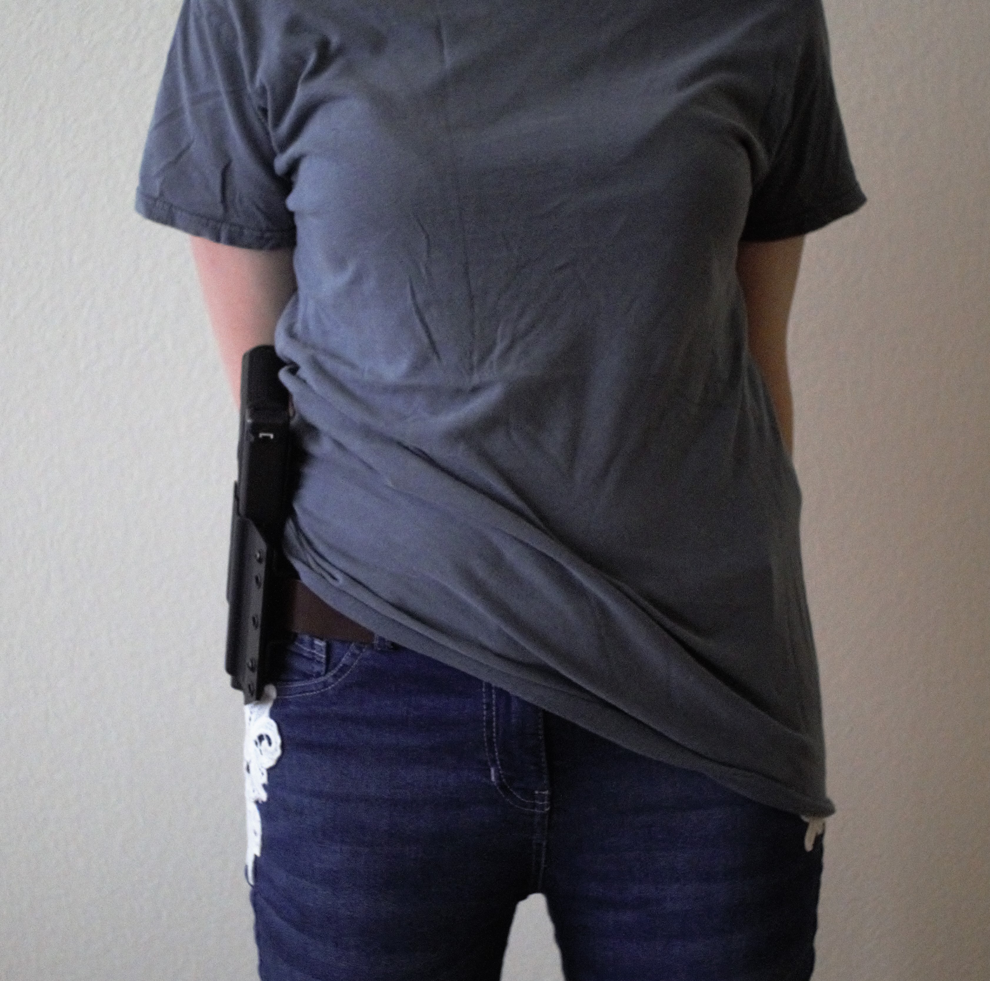 With tight pants comes tight groupings right? Being a noodle, nothing in the tactical world is my size. Not many holsters fit me very well and I can’t actually appendix carry without printing. The IWB DOS holster is thin and conceals under my belt, conforming nicely to my frame, while the OWB holster conforms to my frame outside my belt. Even the Torsion that I bought a year ago conceals no problem with the tightest of pants but it’s not about the holster all the time.