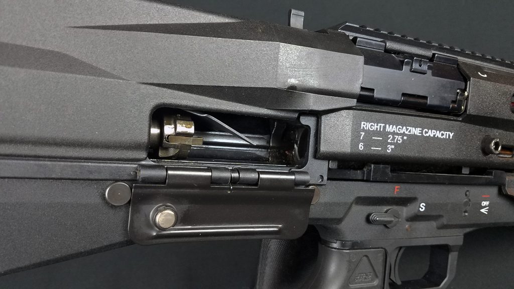 On paper, the UTS-15 delivered everything that was asked of it; Its bullpup design gave it an overall length of 28 inches with an 18.5 inch barrel, and it is a compact, lightweight design. Additionally, it also came standard with a lever that allowed operators to choose which barrel would feed, or alternate between the two in the case of the operator choosing to load different shells in each barrel.