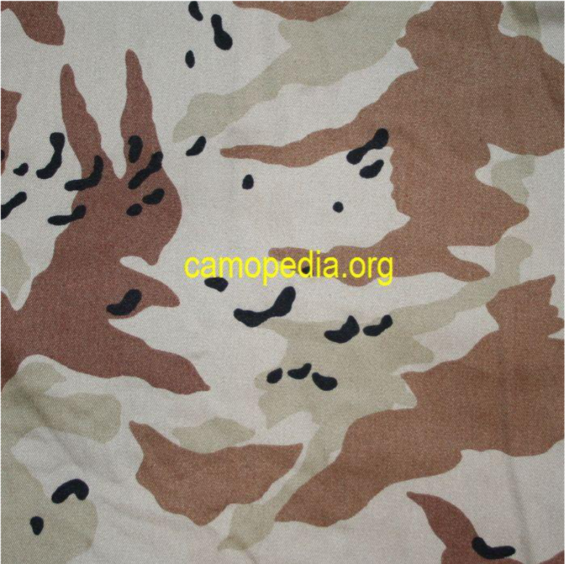 In 2008, Japan finally began issuing a desert pattern to units deployed by the UN. It has no known name, and is usually called “Japanese Desert”, “Japanese 3 Color Desert” or “Japanese Coffee Stain”. It is just that, a near copy of the US 3 Color Desert “Coffee Stain” camo but with thinner, more Fang-like shapes. It was first worn by JASDF personnel in Iraq and is still used today.
