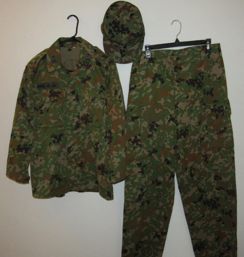 The best place to try to find a uniform is ebay, although if you have a way, and the know-how, you might be able to order a commercial or even a PX version of the uniform off Rakuten or S&Graf. The government issued uniforms are very hard to find and are ID’d by the tag; it should have a production date and a Q inside of a cherry blossom, the symbol of the JSDF that replaced the Chrysanthemum. PX and commercial uniforms are generally authorized for use by members of the JGSDF, however they often have different blends and dyeing methods resulting in some variation in coloration of the uniforms, especially when faded; some are known to turn almost a sort of lime green after heavy sun and washing.