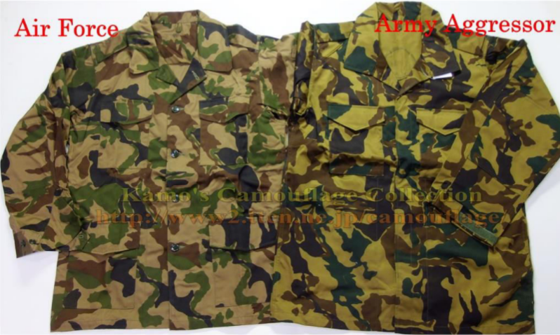 In 1988, the Japanese Air Self Defense Force (JASDF) also introduced a pattern for use by Air Force Ground Defense and Air Base Security units. It is simply a recolor of the Fang camouflage and in different cuts. Designated the “Aviation Camouflage Uniform”, in the Western collecting world it is often simply referred to as “Air Force Fang”. It is still worn today, but is in the process of being phased out by the new JASDF digital pattern.