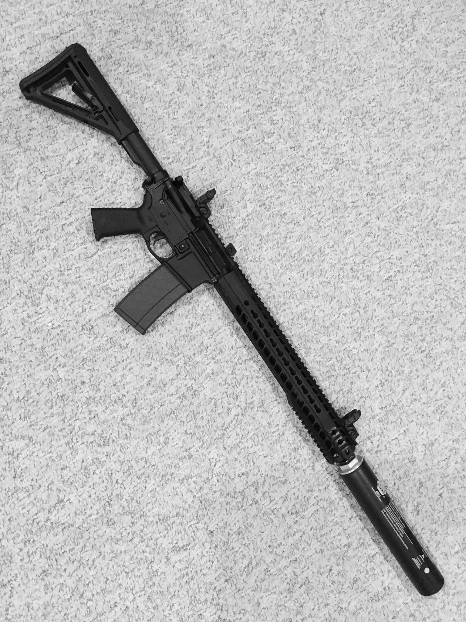 - Fuel filter suppressor mounted to an AR-15