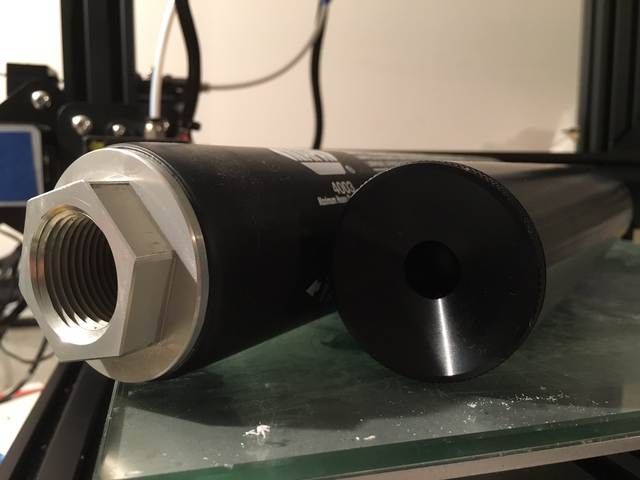 Currently being developed by KadeCAD and DetDisp member jstark1809, the everyman’s suppressor is within reach. Using a Napa 4003 fuel filter or equivalent as a housing, one can cheaply manufacture suppressor baffles on a $200 3D printer at home with no hand tools whatsoever. These baffles are disposable, but by no means are they fragile. Current testing has shown that when printed in standard PLA plastic, the baffles can withstand 150 continuous shots of .223 Remington ammunition. Use of more heat-resistant plastics like PLA+ will increase the lifespan of the baffles, but even if the baffles are made of less durable material the costs of reprinting them should cost less than the ammo used to destroy them. Again, don’t do anything too fun and make sure you have a good dog-sitter.