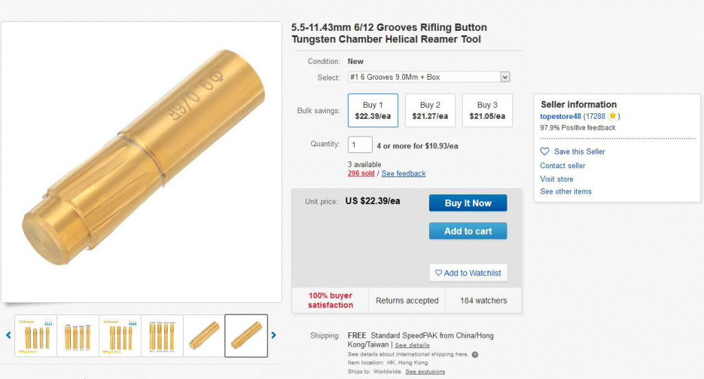 However, cheap foreign rifling buttons have recently appeared on eBay. Since I was rapidly running out of alternatives, I decided to pick one up and give it a try, and in the process talk a little about them. If you’re considering purchasing one read through the whole article because there are some pretty important details you should be aware of.