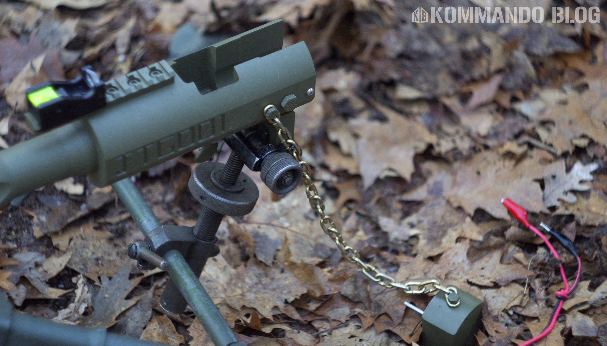 Josh has since created a second detonator which is much more robust, although he calls it “plain and uninspired”. He made a mount for the cannon to sit on an M2 tripod. Not to be confused with the M3 tripod, for the M2 machine gun. He borrowed this piece from his 1919. The cannon is steered with a traverse & elevation adapter (T/E). For a sight, he used a “See All Open Sight, gen. 1”, which works surprisingly well. Josh has put over 30 rounds through the cannon. This powerful ammo was responsible for bending and breaking the legs of the tripod from the massive recoil.