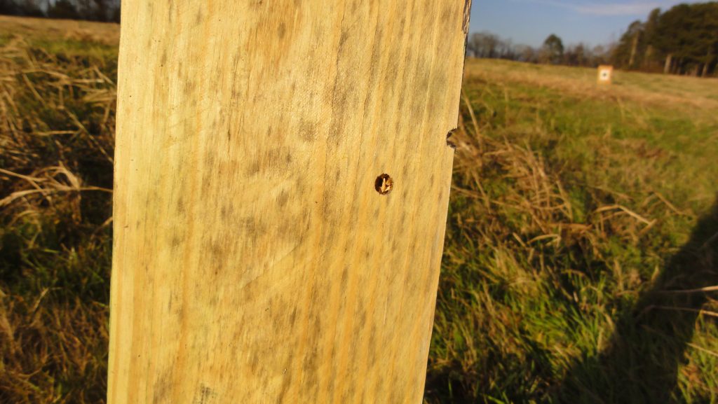 I was interested in seeing how such a light and soft projectile performed in penetrating various objects. All shots were taken at 25 yards. I started with something easy, half inch pine board.