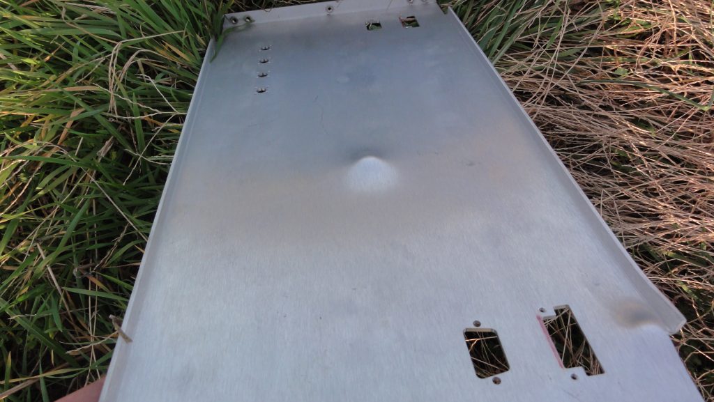 The first shot was right where I wanted it to be, this left a significantly smaller dent than the aluminum. Both sheets gave a very satisfying ring when they were hit.
