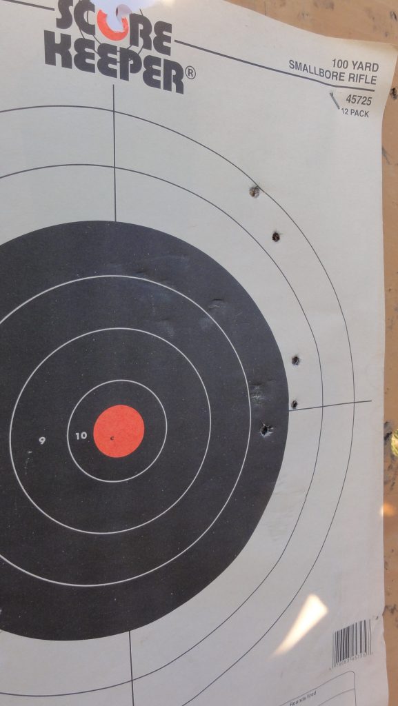 I put probably about 12 rounds onto the plate without getting it to ring. Frustrated I inspected the target and discovered that I was indeed making hits, the plate was just so heavy that the light bullet wasn’t able to make it ring anymore. The only thing the bullets really did was knock paint and dirt off. There was no cratering at all.