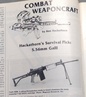 However, in my opinion he redeems himself in the June ’83 issue by choosing the Galil as his personal pick for a “survival” (SHTF) weapon. I don’t find his opinion here to be any more correct than his opinions of 9mm, but it’s a cool as hell choice I can respect.