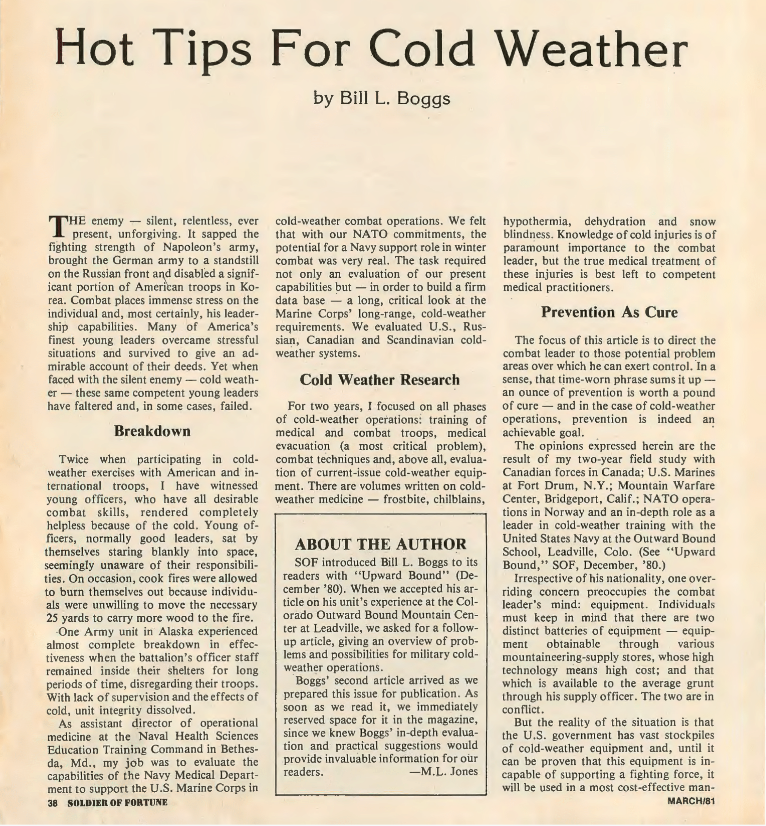 No spooks or skinwalkers here, just general outdoors survival tips. In the March ’81 issue pictured above, there’s an article detailing some cold weather survival tips that were genuinely well presented and easily something you would find in a outdoors specific oriented publication.
