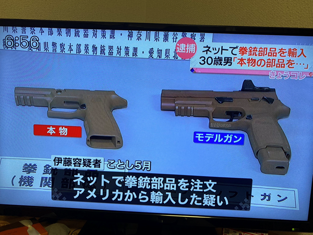 ネットで拳銃部品を注文アメリカから輸入した疑い