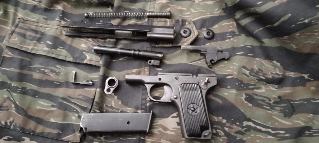 Still, it is a decent pistol. But the key word there is “decent”. What isn’t decent is the takedown of this pistol, which I would describe but there’s not enough swear words in the English language to realistically summarize how fiddly it is to do so. Have this photo of the field stripped Tokarev.