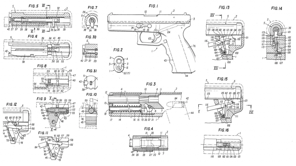 The concept of this being as wild as you’d expect would require outside help, so as Gaston would expand his company, he’d bring in a mixture of various outside help for the design of the Glock pistol. Military, police and civilian shooters, as well as engineers to help him iron out the design. And that design would pool it’s influences from various Austrian sources. The striker system borrowed from the Roth-Steyr 1907, the lockwork being a modified Browning camlock system, and with a number of new features such as a trigger blade safety, polymer frame and polymer mags. While they weren’t the first to do things like a polymer frame, Alex Seidel’s weird project gun that was the VP70 had beaten them, they were the first to coalesce all these ideas into one pistol. And with a man like Gaston at the helm, who would shoot his prototypes left handed so that, if it blew up and destroyed his hand, he could still write with his remaining hand, they were in good hands. Incredibly dedicated and mildly insane hands, but hands nonetheless. In April of 1981, he’d submit the first patent documents for his new handgun, and given it was his 17th patent, it would earn the name of “Glock 17”.
