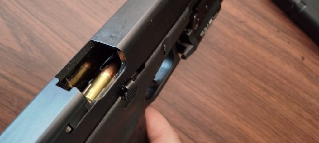 The slide release is this tiny little chunk of bent over sheet metal, one on both sides since we are the fancy Gen 5. It’s simple, effective, falls right under my thumb and is easy to operate. Not much to talk about there. Then the trigger. Which means I have to talk about the striker. And the “safety”. Right there’s a bit to break down. The Glock’s trigger and trigger blade are the thing that weirds out most newguns who pick these up, primarily because of the classic “it doesn’t have a safe-tee!” which is the sole reason in this world the M&P sells.