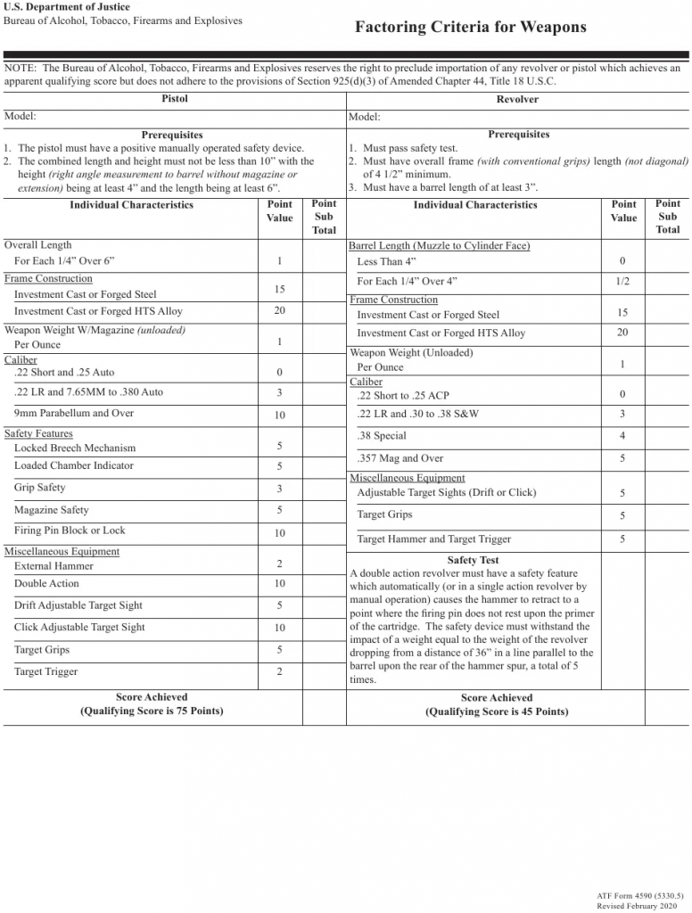 ATF Form 4590 would be created alongside the GCA of 1968, creating a points system for a handgun that was going for importation. It is a generalized list of features, such as barrel length, caliber, action type, frame construction and sights that, if met properly, would allow a handgun for importation. This system is the progenitor of the phrase “sporting purpose” as it would be the ATF requirement for any product intended for importation here-on. This system was, and remains, very temperamental. Famously, it would be the system that would get the Walther PPK thrown out of legal American importation, creating the Walther PPK/S as a result. However, it did cut off the supply of the Saturday night specials as many of them didn’t fulfill the import requirements. But there was a loophole.
