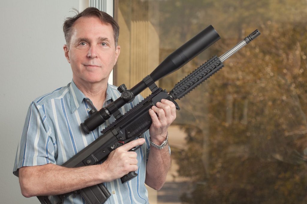 Based in Stockholm, founded by George Kellgren, the firm was a foremost technical house for producing avant garde advanced designs to fit specific roles. None of these ever seemed to be roles for any real use but they are quite wacky. Their first major product was the Interdynamic MKR. Around the company’s founding in 1977, as the 5.56×45 cartridge was gaining popularity and 5.45×39 aimed to do similarly in the Eastern Bloc, Kellgren and his design team worked up a rifle concept that aimed to tweak the concept. And by tweak, I mean very much tweak.