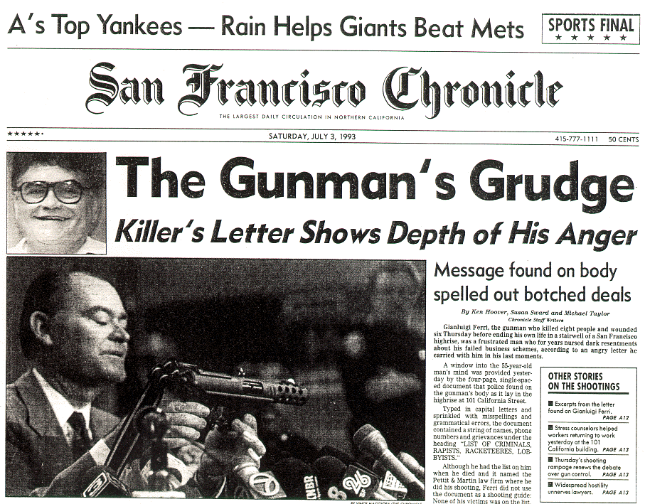 On July 1, 1993, a former businessman entering bankruptcy by the name of Gianluigi Ferri would enter a large corporate office building by the name of 101 California Street in San Francisco. Ferri had been a businessman in the market of real estate, operating a variety of sales of property, homes and such over the 1980’s and had made contact with a firm within the 101 California Street building by the name of Pettit and Martin. When Ferri had forwarded a request for their council in a case, they had elected to send him to an alternative legal council all the way in 1981. 12 years later, following the collapse of his business and a descent into paranoia and fear, he would enact revenge. Arriving at the building with Two TEC-DC9’s modified with a proto-bump fire trigger as well as a single Norinco 1911, he would begin his shooting at the 34th floor of the building and make his way down, before killing himself as the SFPD closed in on the area. All in all, he would kill eight people and injure six. And he had used Intratec’s workaround gun in the process.