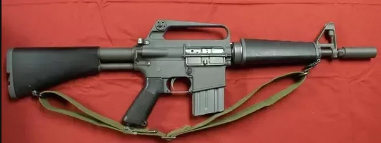 The Colt Model 607, dubbed the “CAR-15 Submachine Gun” would explore the concept further, marrying a short barrel to an AR-15 receiver alongside a collapsing stock instead of a full one, although at first this stock was shaped like the original M16 style stock. Testing with United States Navy SEALs would begin in 1964, and while the rifle was liked for it’s small size in a combat zone as close ranged as Vietnam, there were some faults. Muzzle blast from the short barrel was loud and aggressive, harsh in the tight confines of the jungle, solved with a modified 3.5 inch moderator. This was later swapped as well, as it caused tracer rounds to wildly jaw out of the barrel, and so would the stock. Originally a cut down version of the M16A1’s stock fitted to a sliding assembly with two positions, it was found fragile and prone to breaking in the field. Colt engineer Rob Roy would develop a slim and simplified aluminum stock, creating the iconic CAR-15 buttstock. They would also swap out the 607’s cut down triangular handguards with a cylindrical round one, easing logistics and making another improvement to the design. These improvements would be lumped into two models, the Colt Model 609 with a forward assist and a Model 610 without. These would become what are more commonly known as the XM177’s.