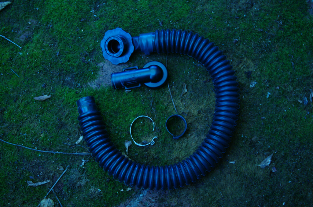 If we want a chance of being able to use this blower, we need a way to connect it to a 40mm NATO mask. Unfortunately, it’s unclear if a OEM 40mm hoses for this blower even exists. Therefore, we are going to need a donor hose. I used a USGI surplus close quarters combat “non metallic” extension hose (NSN # 4720015159261). These are cheap and common, coming in at about 12 USD with shipping from Ebay.