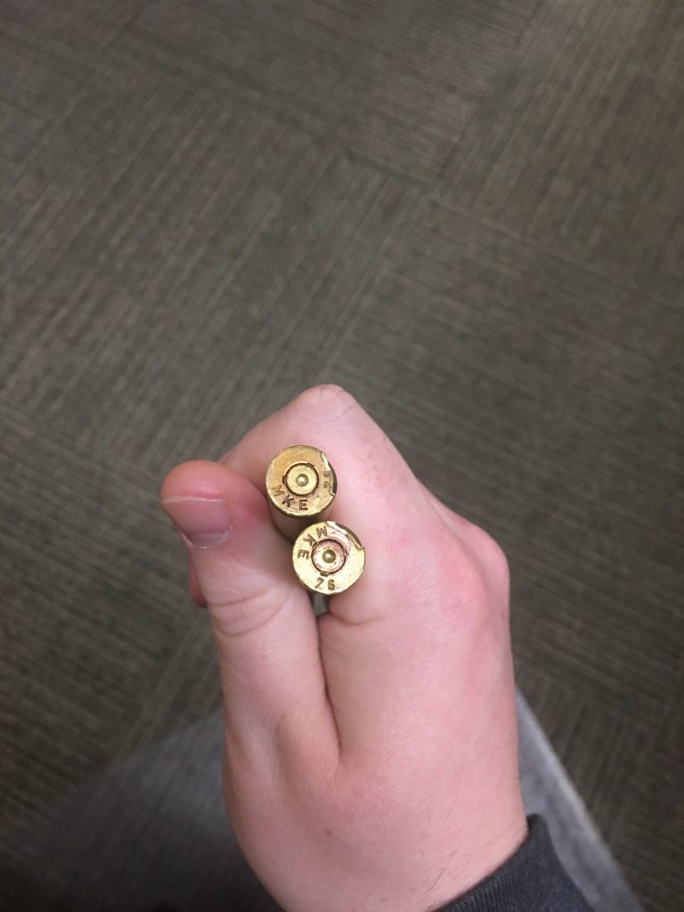 As I mentioned above, I brought out some other ammo for the second range trip just so I could be sure the MKE ammo wasnt the problem. While it did group more consistently with the new barrel, I did run into another issue. Out of the 60-ish rounds of MKE I fired, I had 4 instances where the second round in the clip would fail to extract. Upon closer inspection, I found that the fired case was still lodged in the chamber and the extractor had ripped part of the case head off.