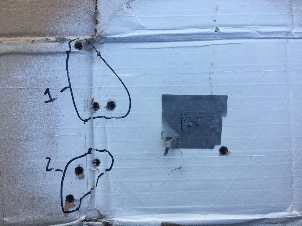 Sadly I forgot my paper targets at home for this trip so I had to use a folded piece of cardboard spray painted with a square of duct tape for the POA. Same distance of 60 yards, but for the “money shot” below I used some newly purchased M2 spec ammo made by Privi Partizan instead of the MKE stuff. I used that for banging an IPSC plate out at 120 yards afterwards.