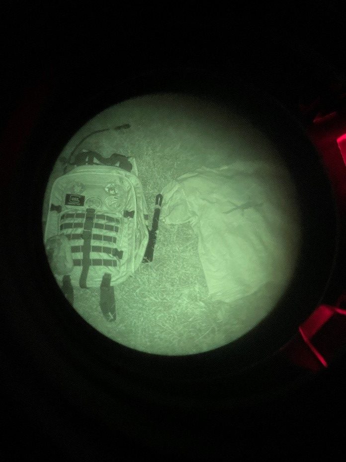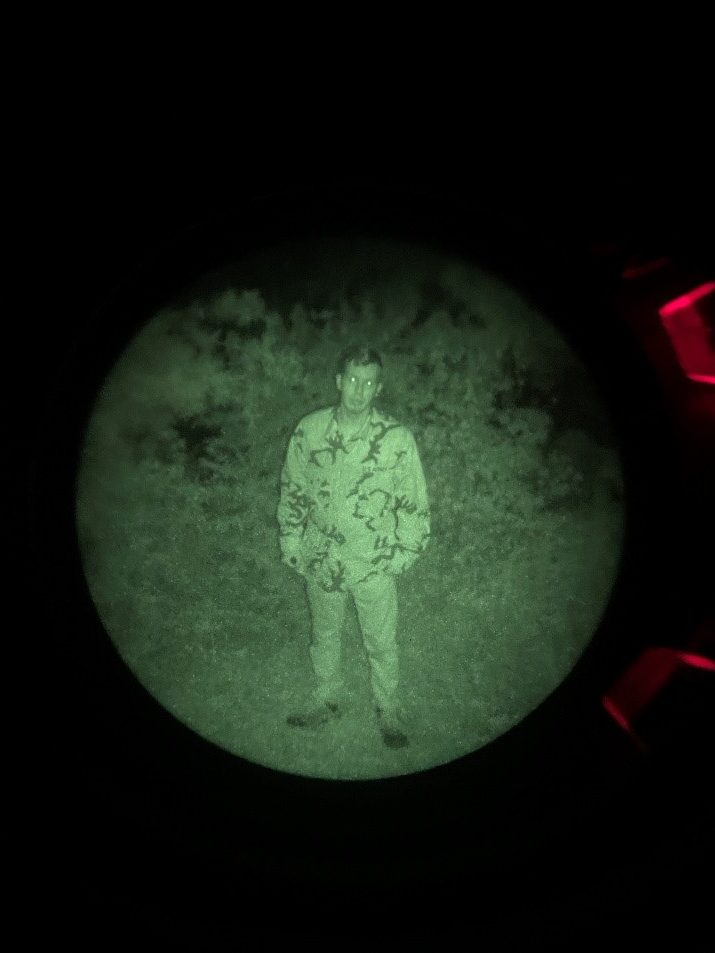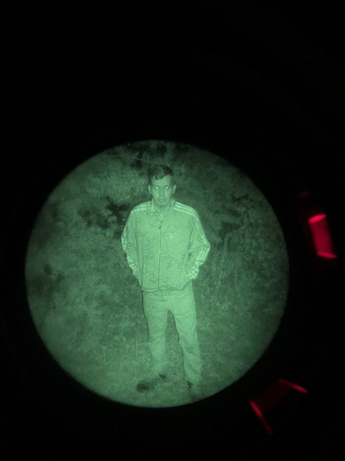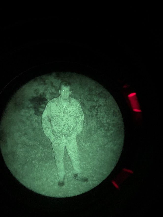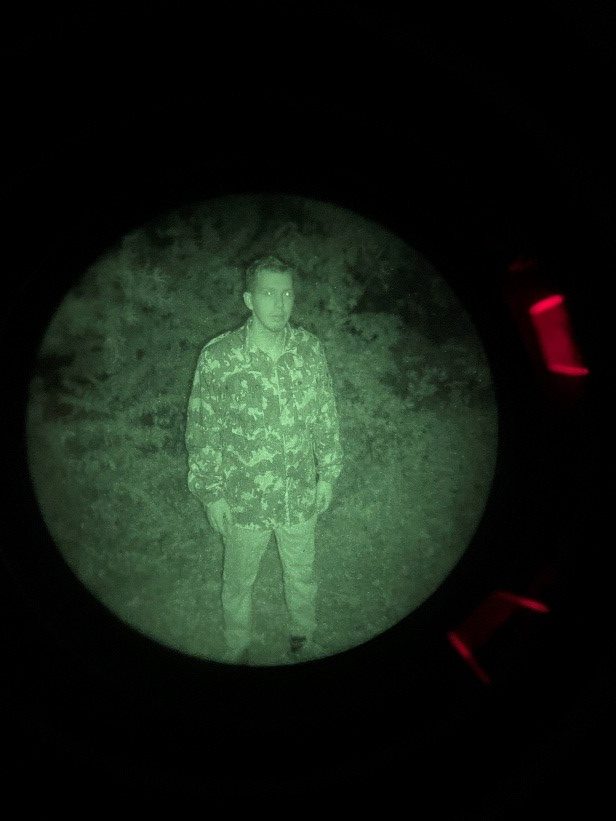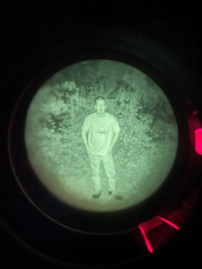 The Night vision used was a gen 3 Omni VII PVS-14 with a Low Light Innovations white phos filter to improve image clarity and the IR illuminator was the on-board with a standard PVS-14. Not only is this what I personally have but anything brighter at this close of a range would flood the image with way too much light for a visible distinction between the tested camo and the background that we are trying to blend into (poverty cope I know).
