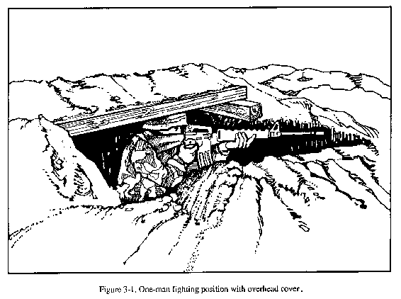 Next consideration is cover and concealment. A good way to defend oneself is to make sure the enemy is uncertain of where you are. If they don’t know where you are, they can’t shoot you. Its really simple. Cover and concealment should adhere to camouflage rules, and make sure that your cover is adequate to protect against the most likely threats to be seen. Cover differs from concealment in that concealment only blocks observation and detection, whereas cover blocks observation and bullets or shrapnel. Simply put, make sure you are in a spot where bullets can be hidden from and your position itself isn’t readily visible.
