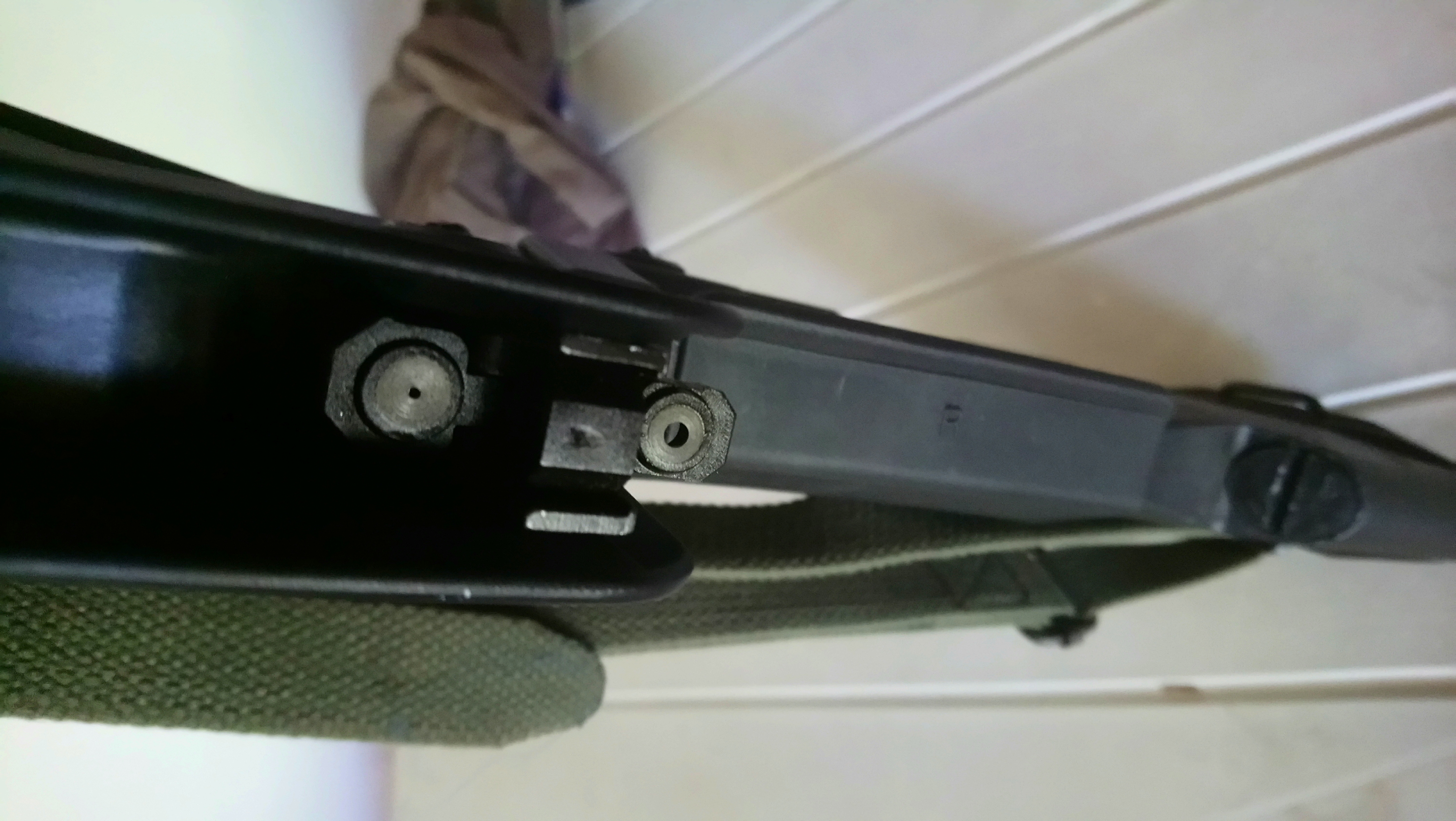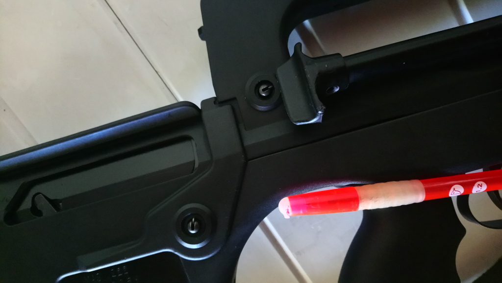 The MAS 222 unlike the FAMAS doesn’t have the bayonet lug. The flash hider is pinned and the ribs for the Rifle grenades are not present, no pleasure to be found.