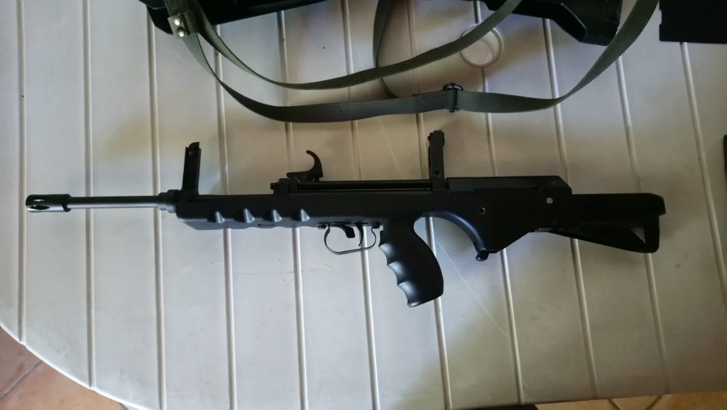 The rifle itself is very well made and robust. The chassis is made of composite material instead of using the fiberglass version first delivered to the French army (infamously known for leaving shards of fiberglass in your hands if you don’t wear gloves.) The rifle being based on the FAMAS F1 model, can only use 25 round FAMAS magazines, which are similar to the STANAG pattern though entirely made of unobtanium and not stamped sheet metal. Since this thing was made in the 80s there is a huge lack of rails that would make any mall ninjas tremble in terror but fear not, you can find brand new picatinny rails parts on the internet for around 100€ or more. You can even mount a “tac-sac” to your one of a kind raifu if you truly desired it.