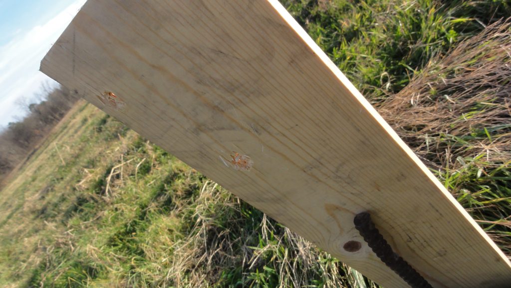 I put two rounds into the board and both went through. I was pleased with how cleanly these rounds were making holes. I next moved to a 2 inch thick board.